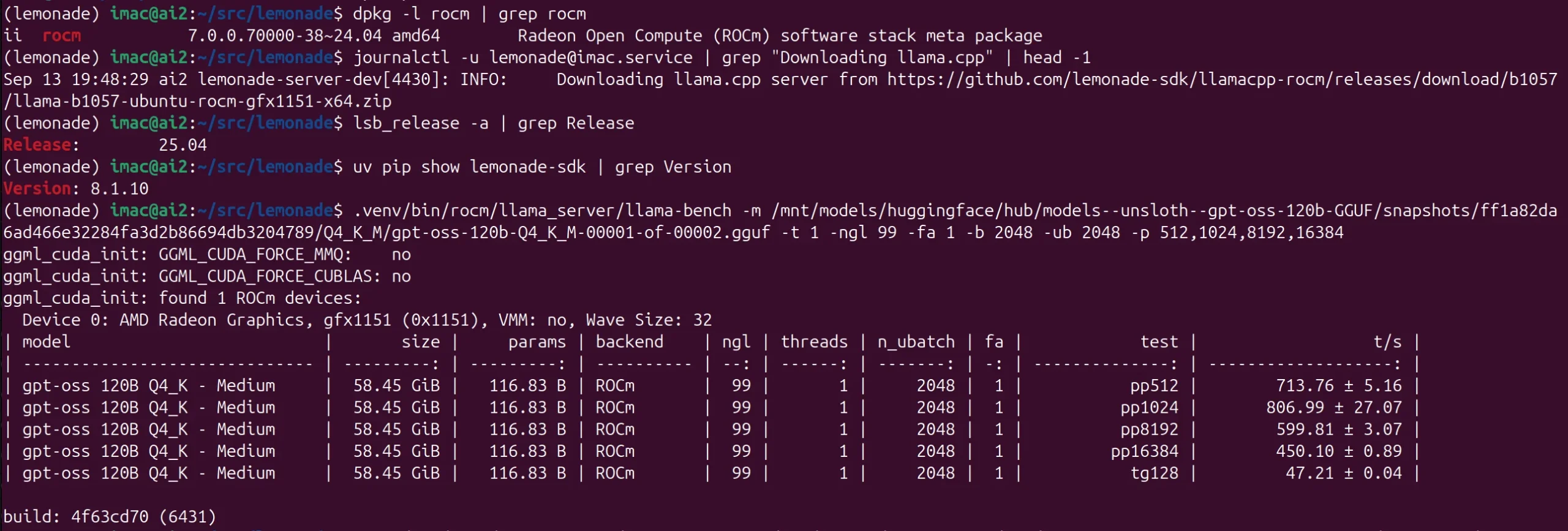 GPT-OSS-120B – 47 t/s – Strix Halo – Ubuntu 25.04 – ROCm 7.0 – LLAMA-ROCM b1057 (Lemonade v8.1.10)