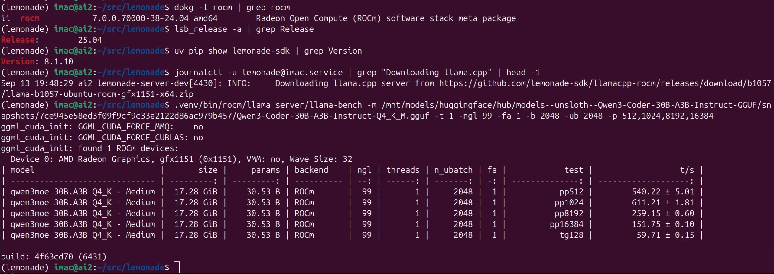 QWEN3-30B-Coder-A3B – 59 t/s – Strix Halo – Ubuntu 25.04 – ROCm 7.0 – LLAMA-ROCM b1057 (Lemonade v8.1.10)