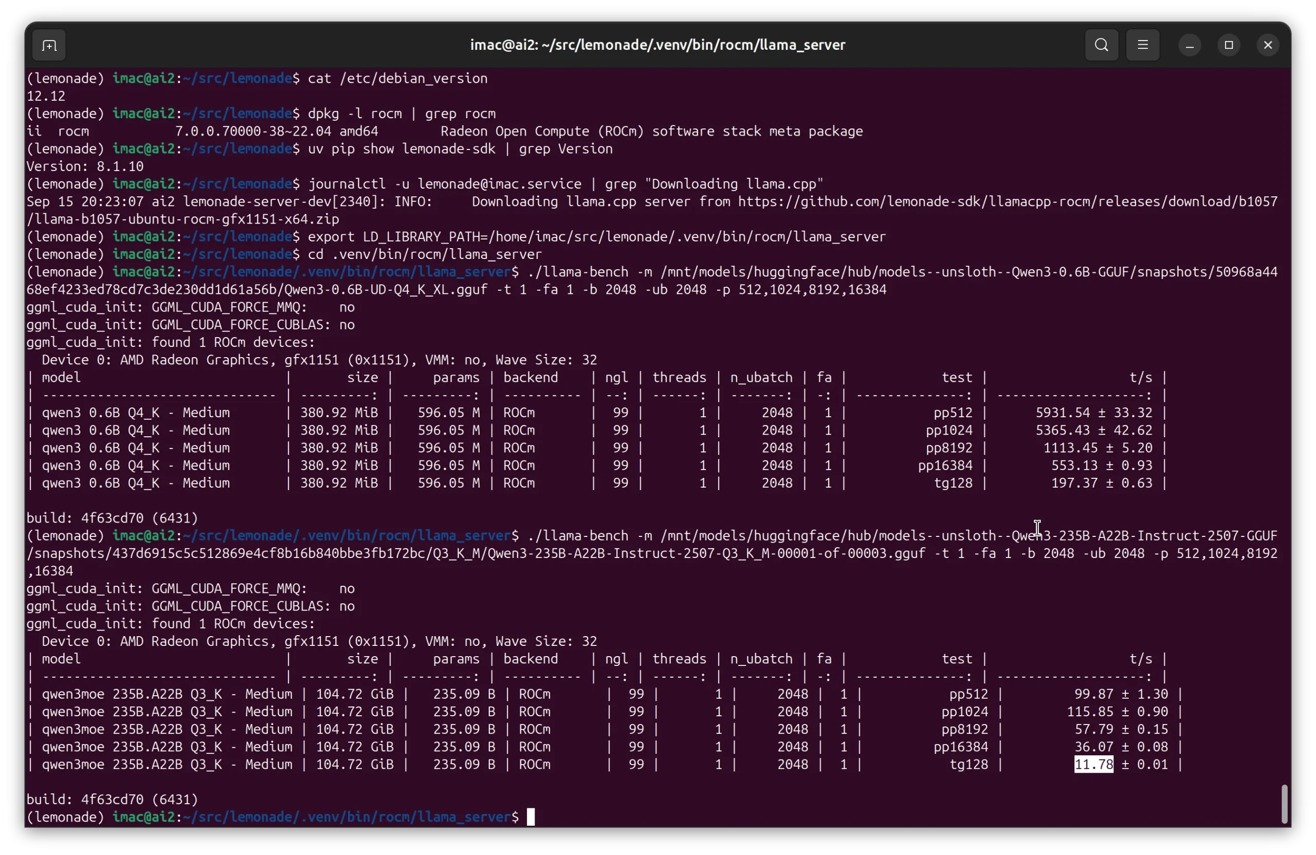 Sep 13 19:48:29 ai2 lemonade-server-dev[4430]: INFO: Downloading llama.cpp server from https://github.com/lemonade-sdk/llamacpp-rocm/releases/download/b1057/llama-b1057-ubuntu-rocm-gfx1151-x64.zip Sep 13 19:48:38 ai2 lemonade-server-dev[4430]: INFO: Extracting llama-b1057-ubuntu-rocm-gfx1151-x64.zip to /home/imac/src/lemonade/.venv/bin/rocm/llama_server